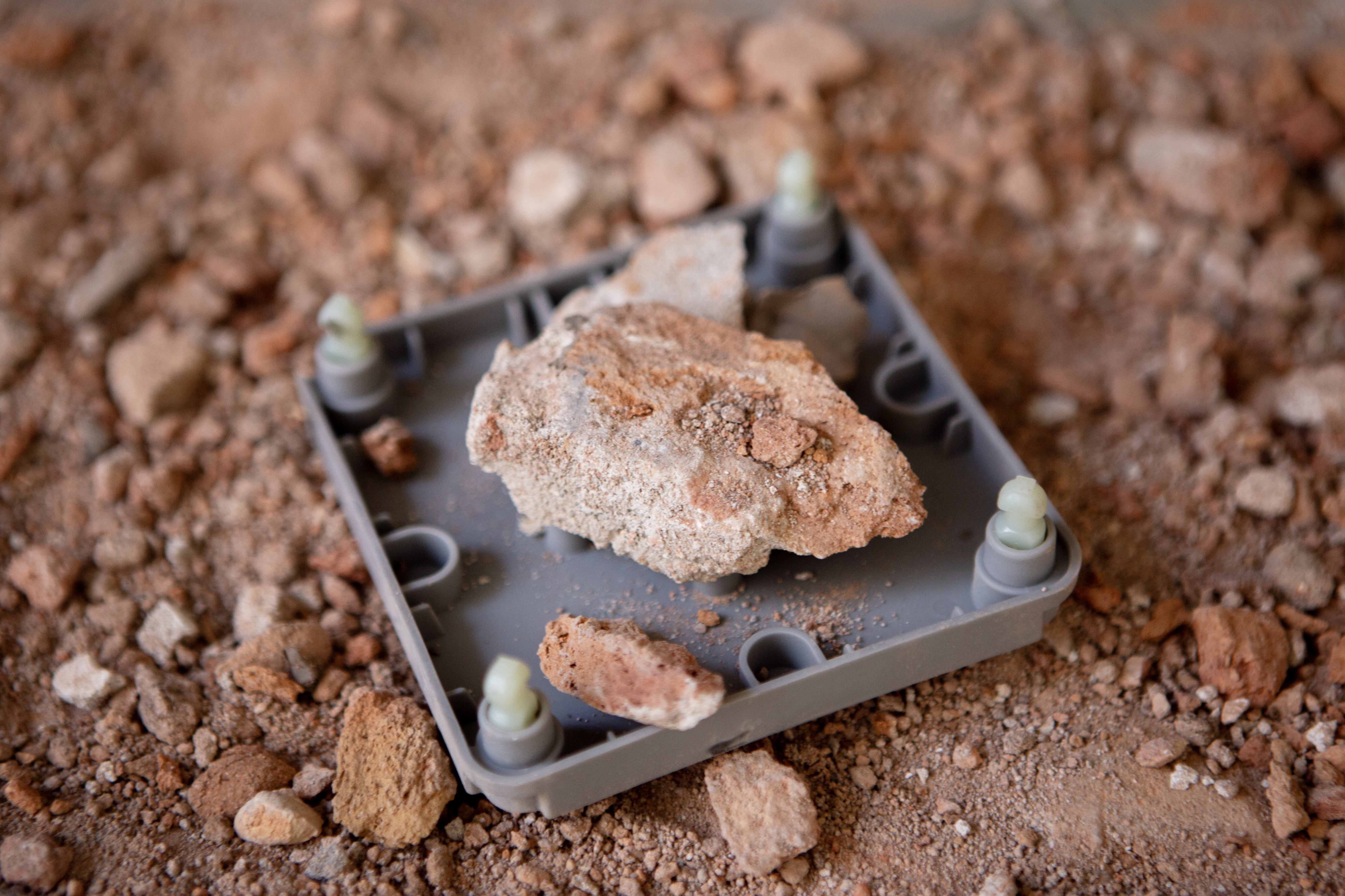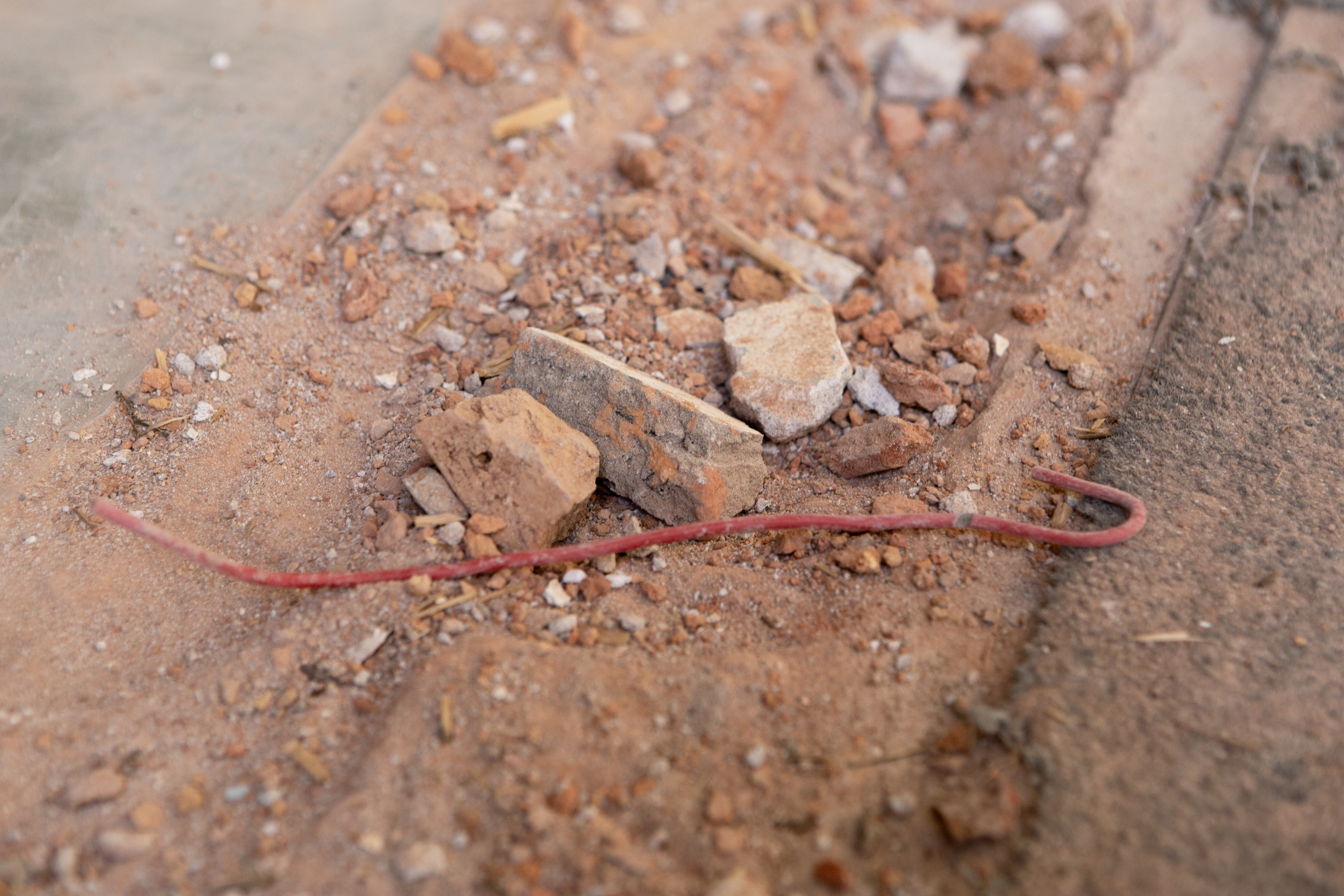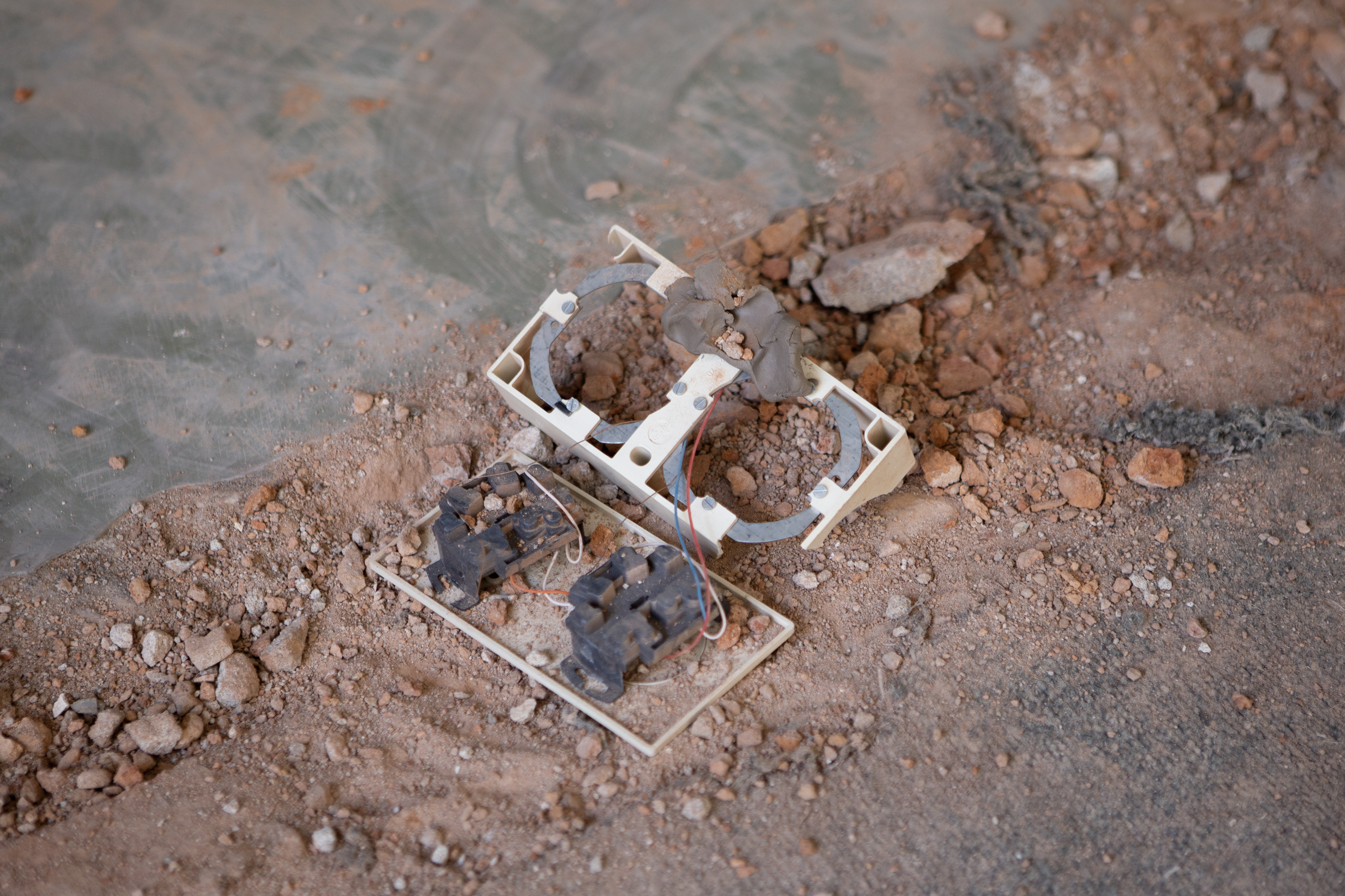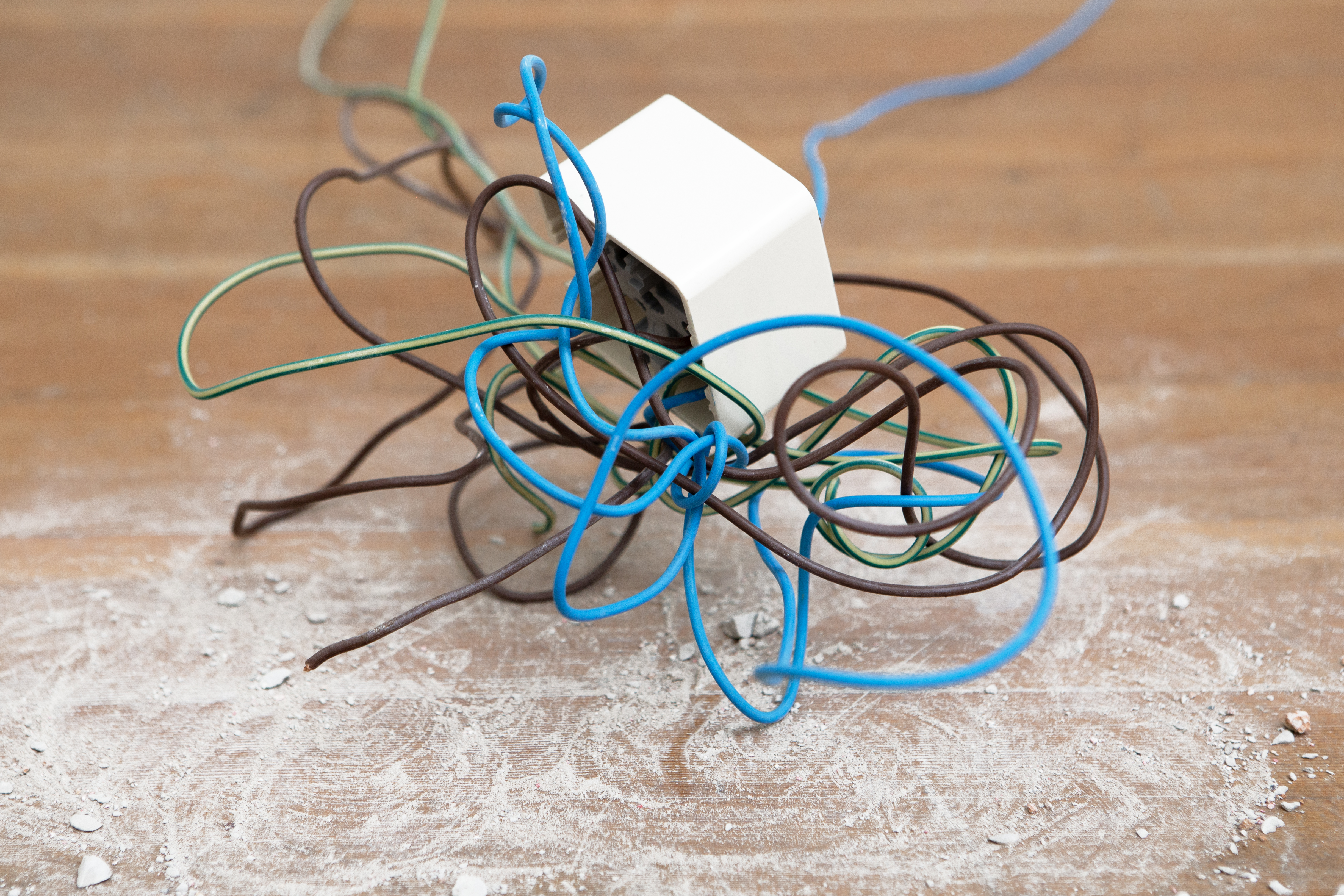 Cables, clay imprints, clay leftovers, corroded plate, broken sockets.