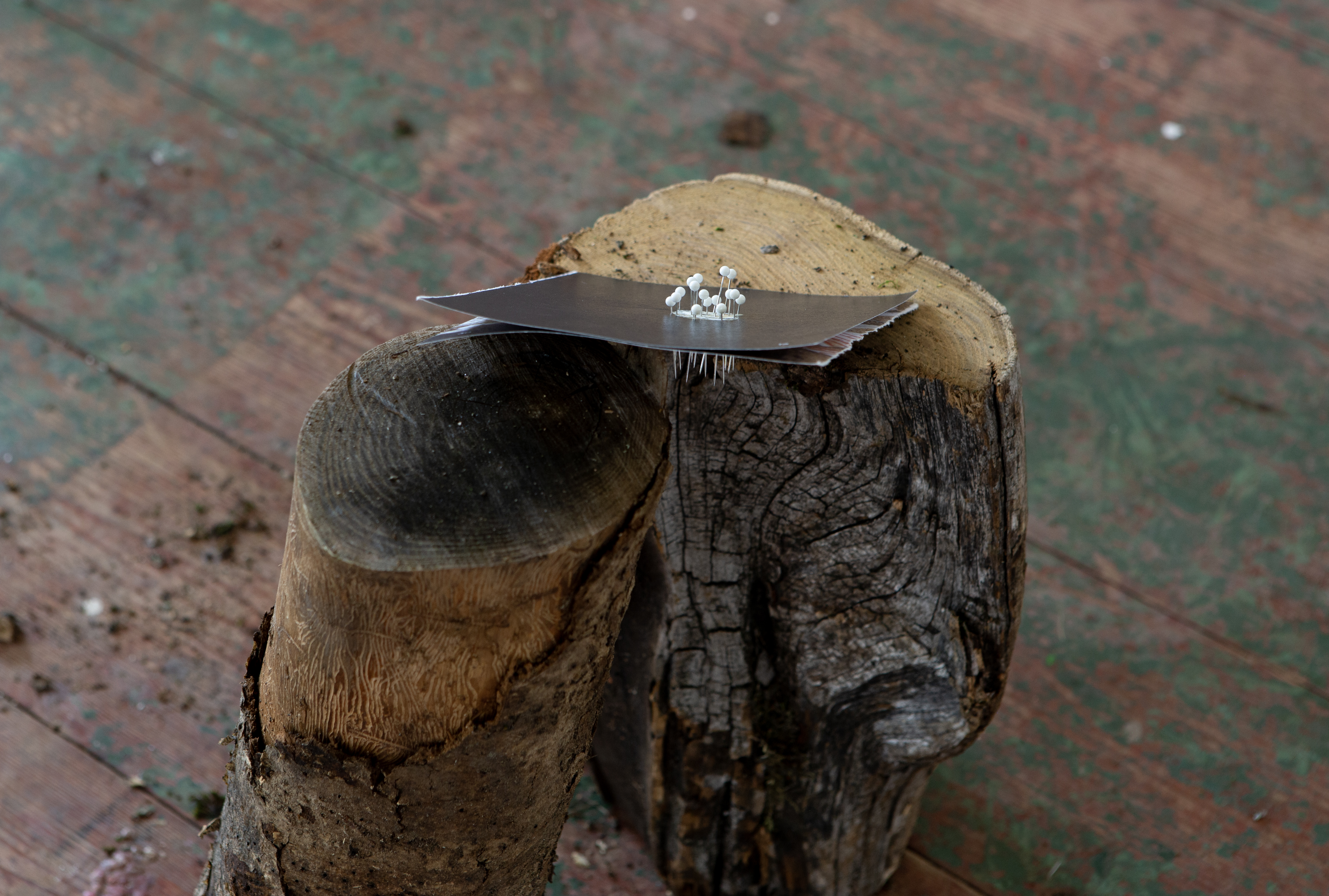 Layers (Priestory traumy) is a follow-up project to Layers (Priestory spomínania), taking the form of a 5-day durational performance rooted in my institutionally critical practice. During the performance, I critically engage with the publication Layers (Priestory spomínania), extracting fragments from the book, tearing, cutting, and creating an installation by layering the material from its pages. The exhibition spans two weeks and takes place at the Jewishcemetery in Telč, where I live without electricity or running water. The performance initially follows the five-day structure, though this was later extended. Through a process of destruction and subsequent reconstruction, I critique the work and examine my trauma. Beyond institutional critique, the installation also sheds light on the mechanisms of totality, which paradoxically affect artists who attempt to critically address totalitarian themes.