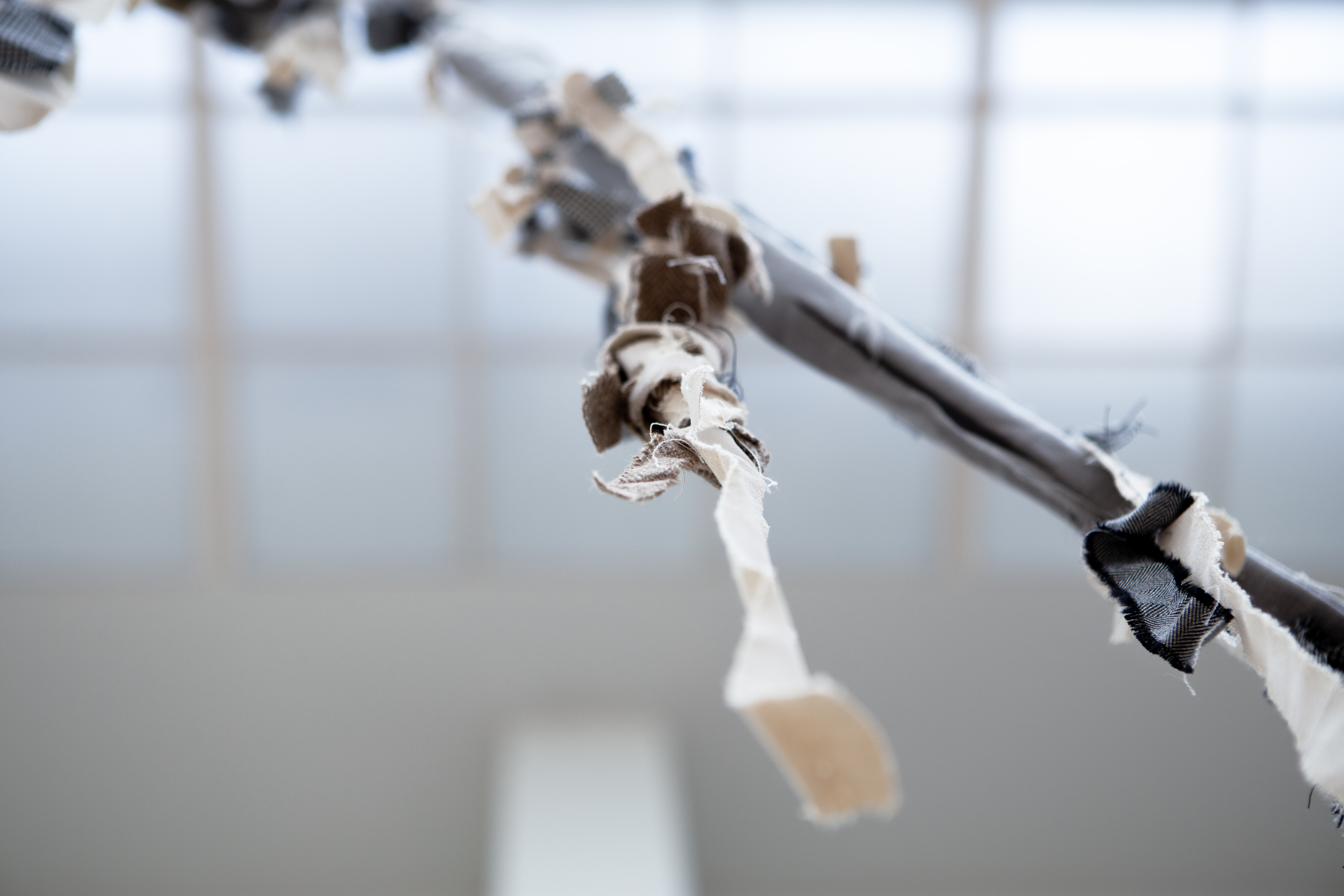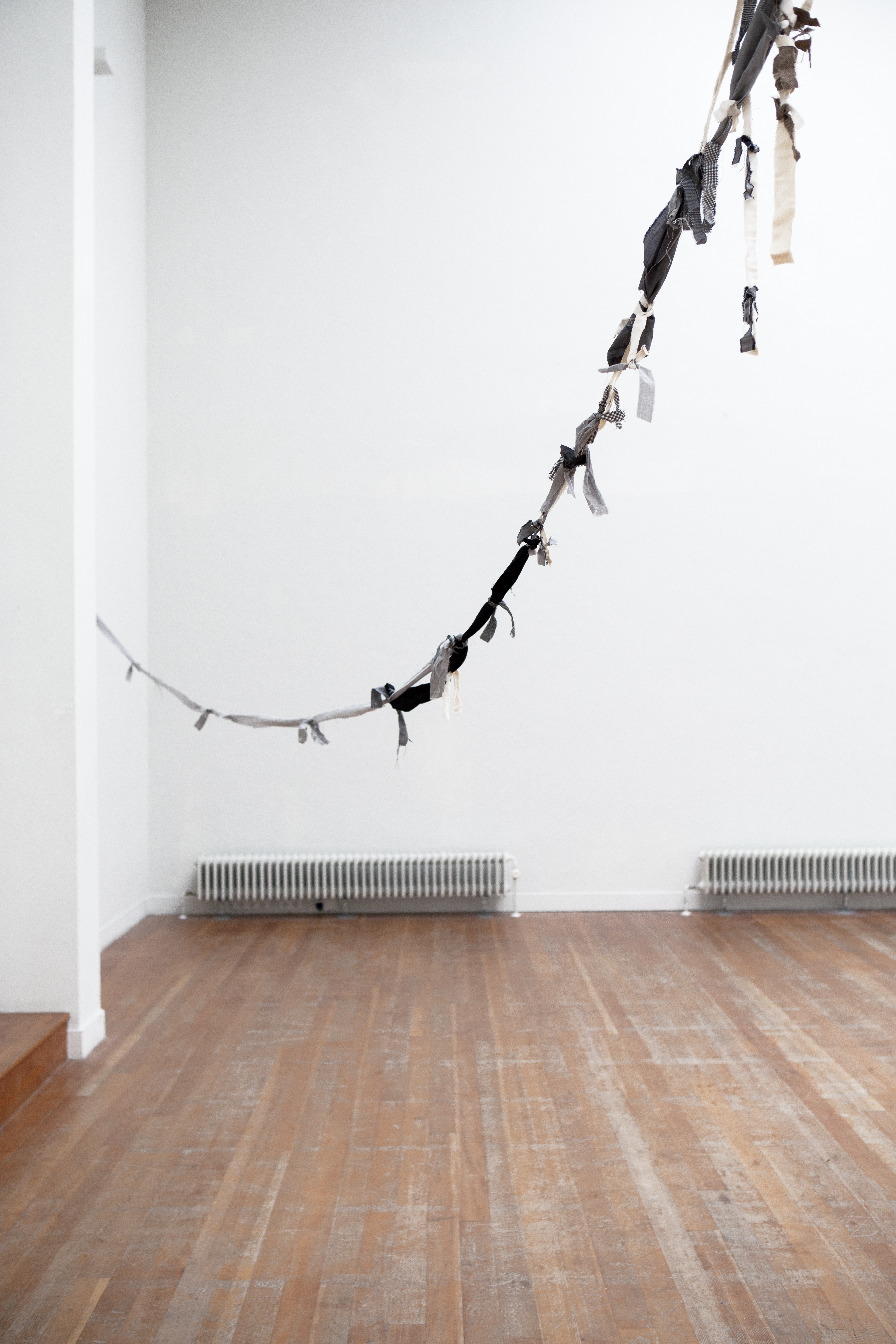 Installation, Merina fabrics, needle, thread, tailor’s chalk